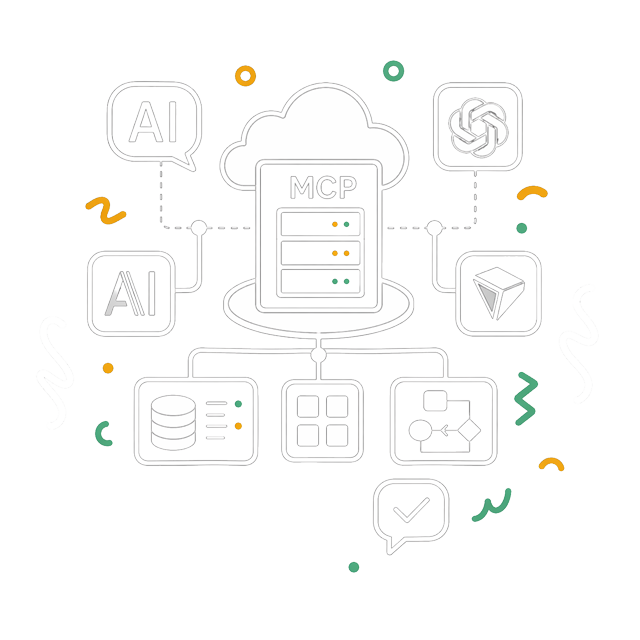 The Model Context Protocol (MCP) is an open standard released by Anthropic in November 2024. An MCP server exposes tools, each with a name, a description, and parameters, that an AI agent reads, picks, and calls directly inside a conversation.